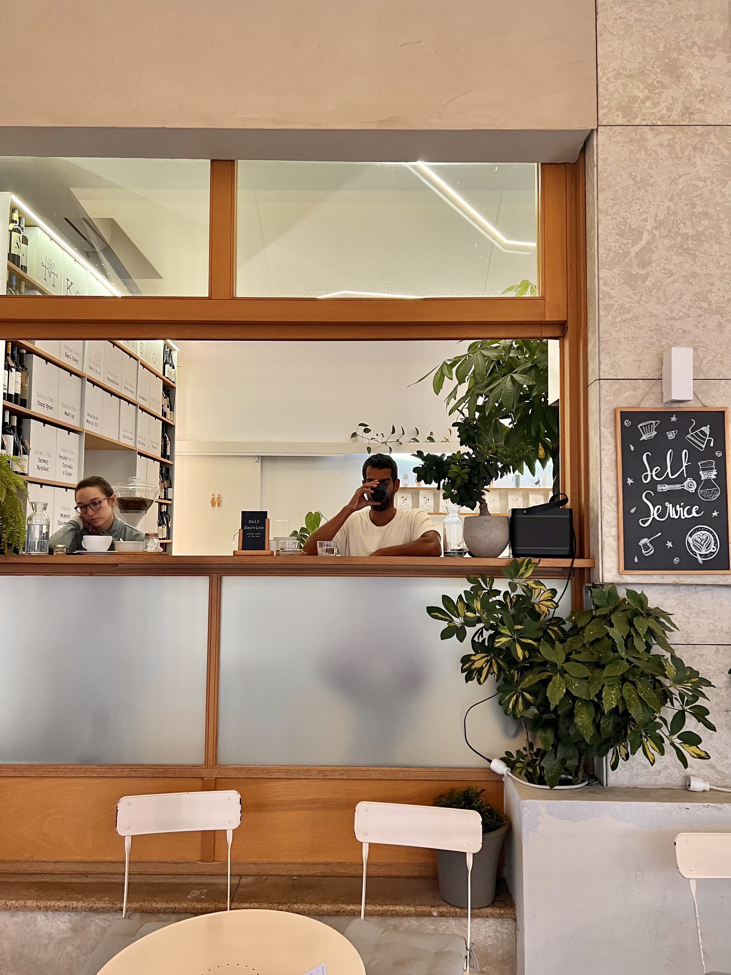 Having been to all three of their locations, I can say they are all nice, but you should go to the one on Nearchou. The outdoor seating section is surrounded by palm trees and jungle leaves with an overall vibe that’s reminiscent of a cocktail bar in Miami. One of the best cafes to just sit, work, and chill, with enough space for everyone.
